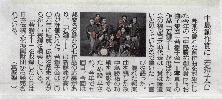 第三回中島勝祐創作賞受賞の記事が 2014年6月27日の東京新聞に掲載されました。