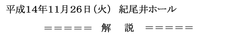 原作は、京都烏丸四条下ルの表具屋、大経師以春の女房おさんが、運命のいたづらから誤って手代茂兵衛と通じ、処刑された事件を脚色したもので、ちょうどその三十三回忌を当て込んぞ正徳五年(1715)に大坂竹本座で初演されました。粗筋は次の通りです。 時は、新暦が出来て店がてんてこ舞の十一月。以春の妻おさんから、実家に用立でる金を頼まれた手代の茂兵衛は、主人の舅のためならと主人の判を無断で白紙に押した所を同僚に見つかります。おさんは、茂兵衛を庇ってくれた下女お玉に、衣も更けてから礼に行きますが、お玉から、夫以春が毎夜忍んで来ると打明けられて、その夜はお玉と寝床を交替します。そこヘ茂兵衛も、平素好意を持っていたお玉ヘ礼を言いに忍んで来ます。お玉の寝床にいたおさんは、てっきり夫と思って肌を許すのですが、明け方近く戻ってきた以春を見て、相手が茂兵衞だったことを知リます。ニ人はその場で逃げ出し、おさんの実家に寄った後、奥丹波に逃げて借家住まいをしますが、正月の万歳に顔を覚えられていたことから追われ、捕まってしまいます。群衆に晒られて裸馬で京都に引き立てられて、ついに二人は処刑されてしまいました。 ニ人に降リかかる義理と人情。近松の世界は、複雑な人間模様を非情にも悲しく物語っていますが、私の作品では、已むにやまれぬニ人の恋情の哀れさに焦点を当て、抑揚と余韻の美しい上方言葉を大切に生かしながら、上方浄瑠璃として描いています。また、今回は、哀れを誘う弓奏弦楽器の胡弓を取り入れることによって、一段と情味溢れる作品に仕上げてみました。 |
